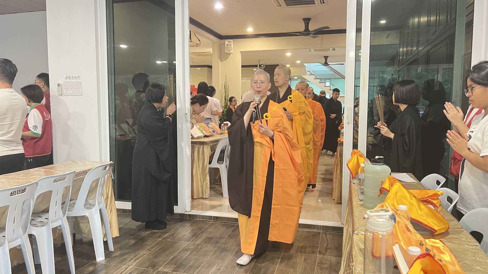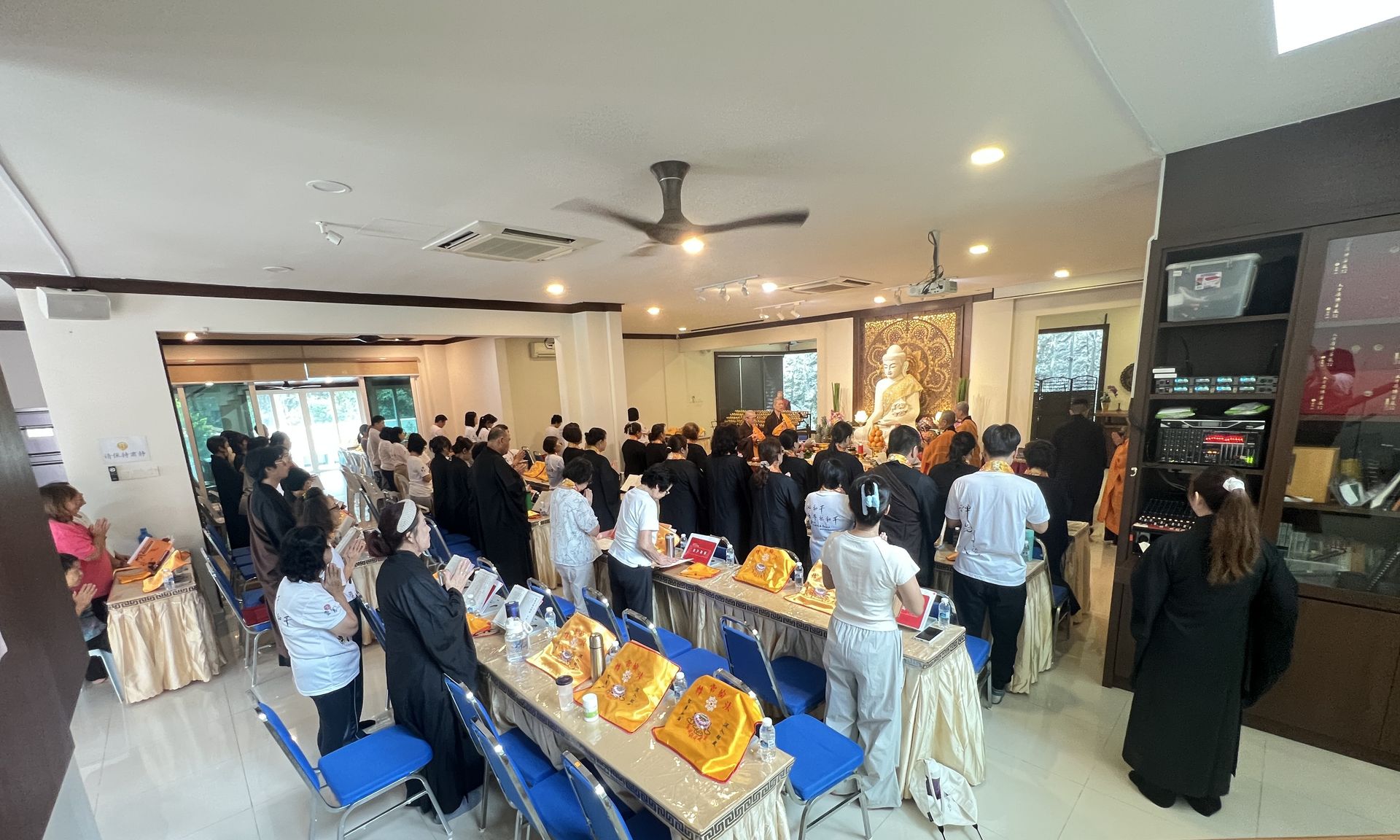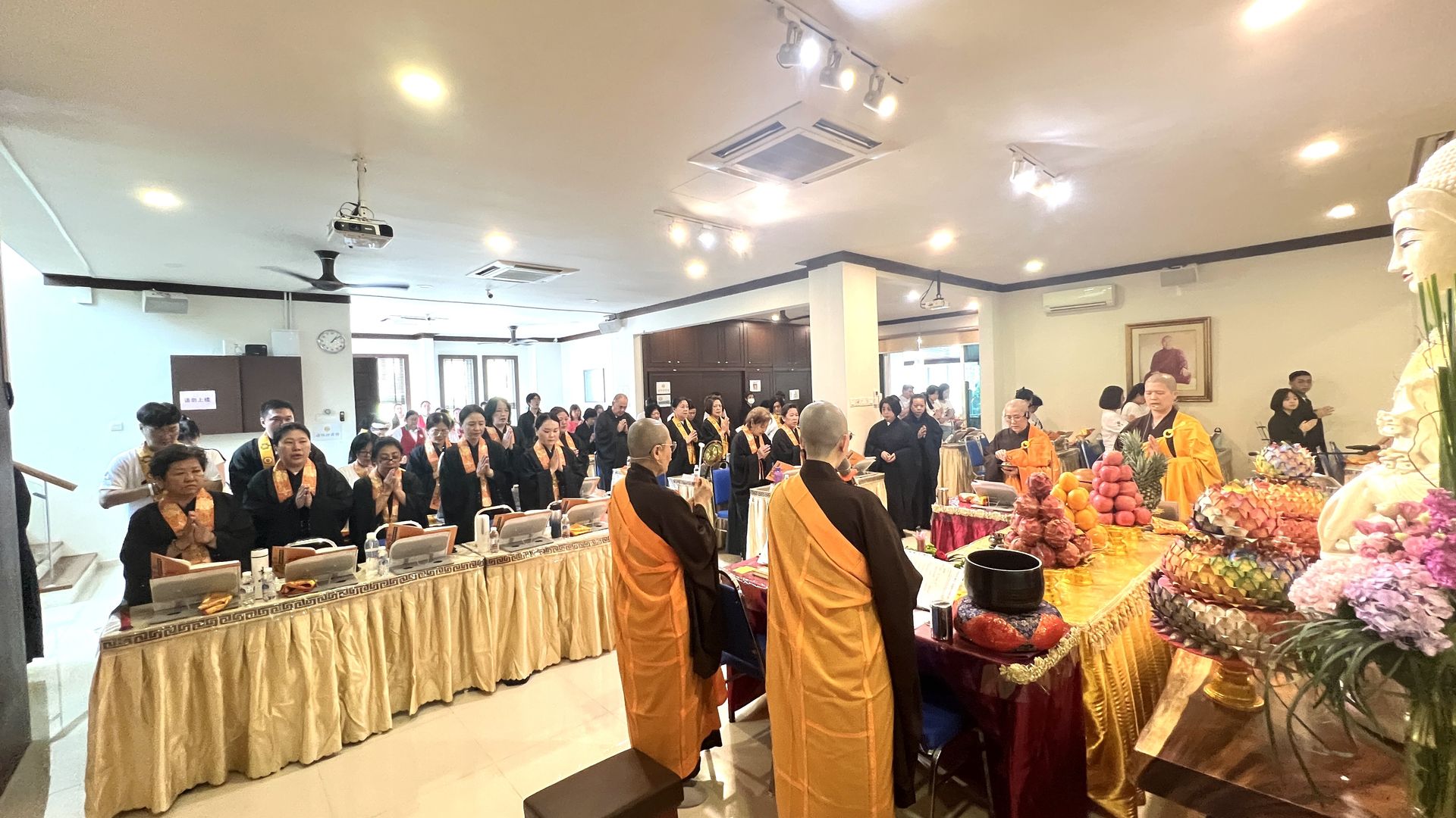 下午则进行五大士瑜伽燄口法会,法会當中除了施食,解除饿鬼飢渴之外,最重要的是为他们开演佛法义理令他们具足正见,同时也为他们皈依及受戒,圆满的法会仪轨,就是希望三恶趣的众生们不再造罪受苦,早日脫离苦趣。