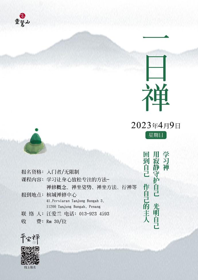 一日禅费用每人RM30,以收到报名费为优先条件录取