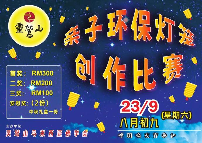 配合传统节日,推广民俗技艺,发扬固有文化 , 激发创作,培养良好的亲子互动关系,欢喜诚邀大家参加灵鹫山举办之亲子环保中秋灯笼创作比赛